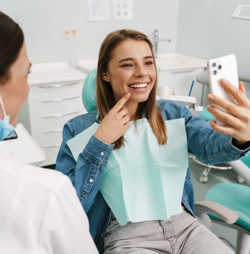 Чтобы сделать свою улыбку белее и скрыть небольшие неровности в положении зубов, сколы или промежутки между зубами, вам могут установить виниры.